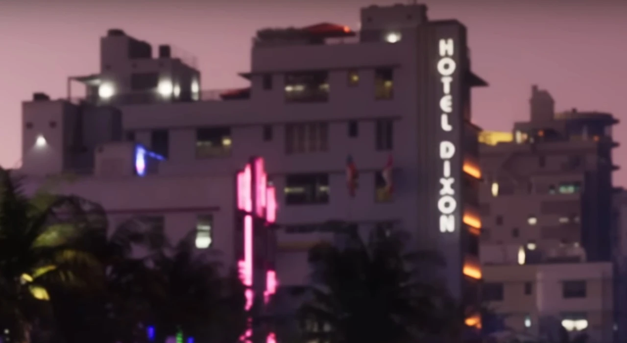 Hotel Dixon first appeared in Trailer 1, before being revealed once more in Rockstar's official screenshots. It seems to contain a luxurious rooftop penthouse for its richer guests.