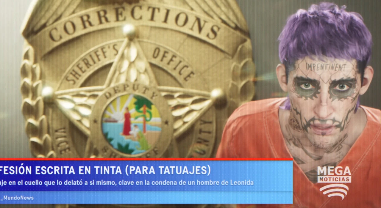 According to the Mega Noticias broadcast he features in, the criminal was convicted after his own neck tattoo revealed that he was guilty of committing a particular crime.