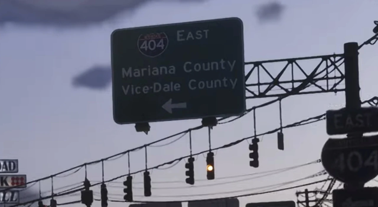 Mariana County was first revealed in Trailer 2, where it can be seen on a sign pointing east on Interstate 404.