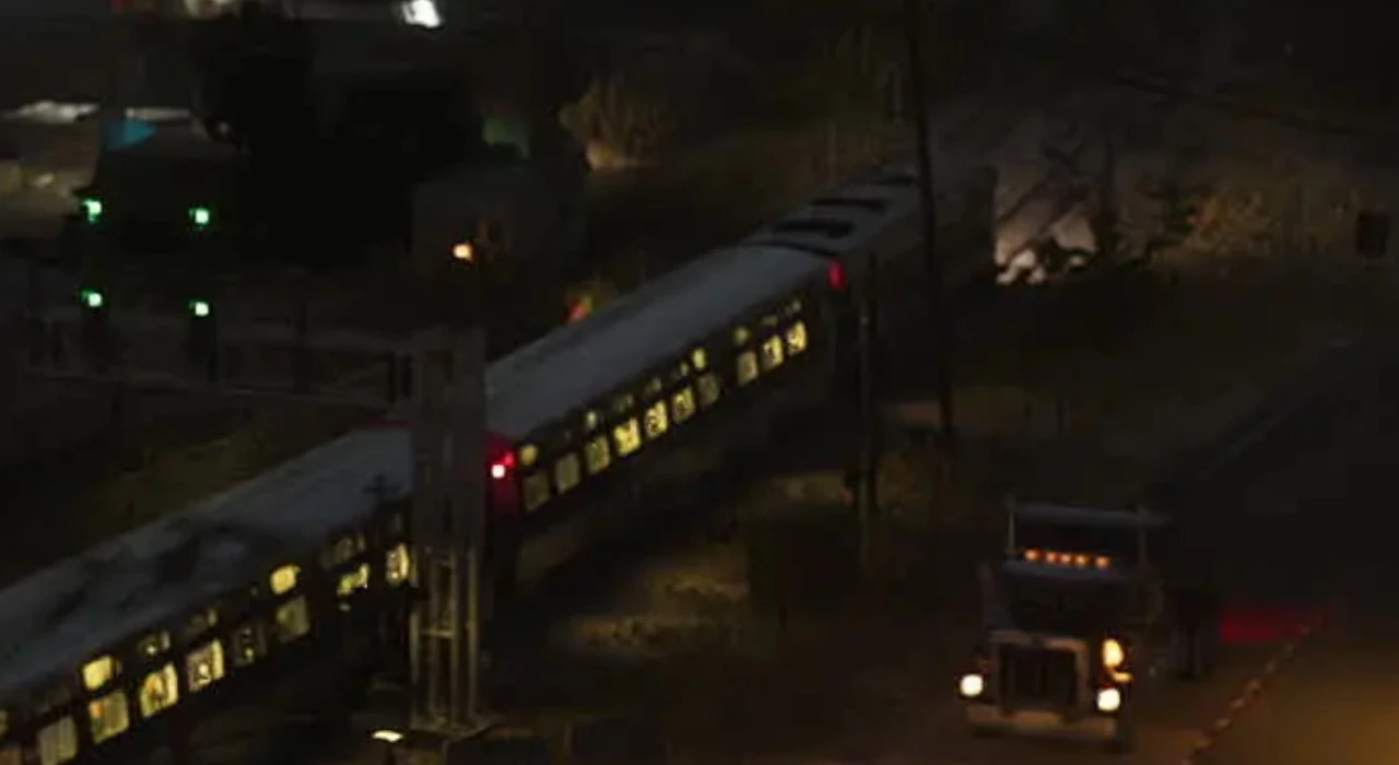 The passenger train is inspired by the real GE Genesis, and can be seen pulling multiple railroad cars behind it.